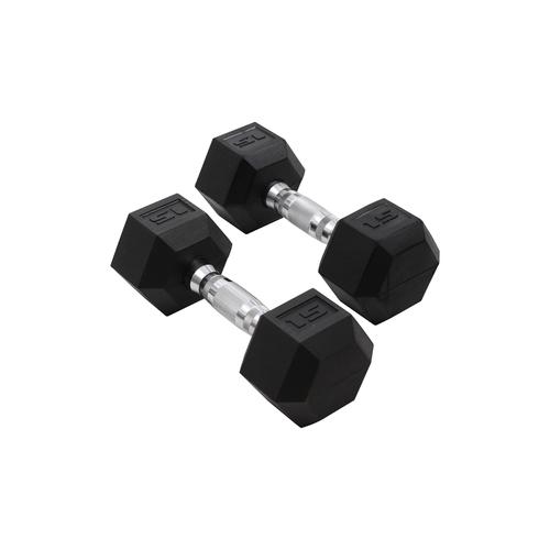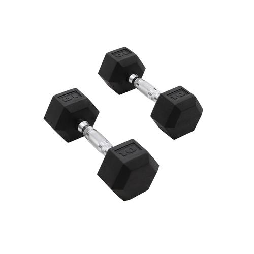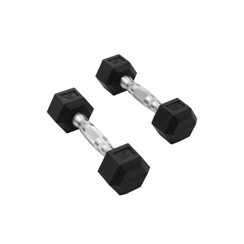 Make your routines a success with this 100 lb. dumbbell set with stand. PVC coated heads with hexagonal shape. Prevents rolling, easier storage and protects your floors. *This item requires special shipping.
